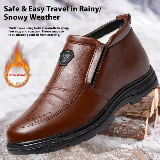 【39-44】 Zapatos de cuero de suela gruesa, cálidos y esponjosos, engrosados de invierno para hombres