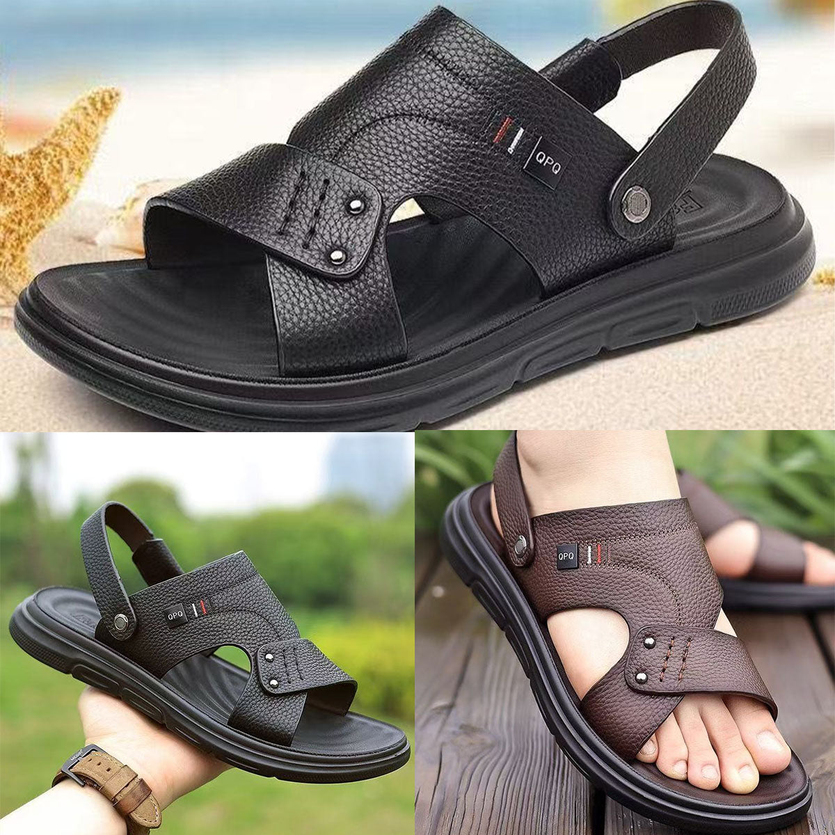 🐂50% sleva 【38-44】Nové pánské plážové sandály z pravé kůže a silnou podrážkou