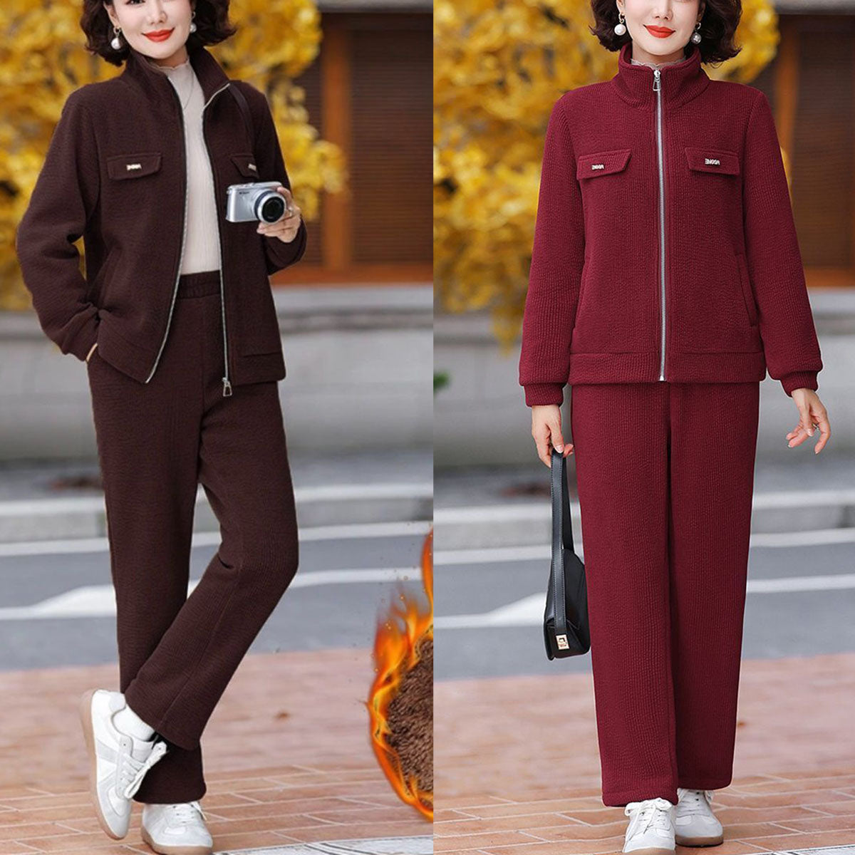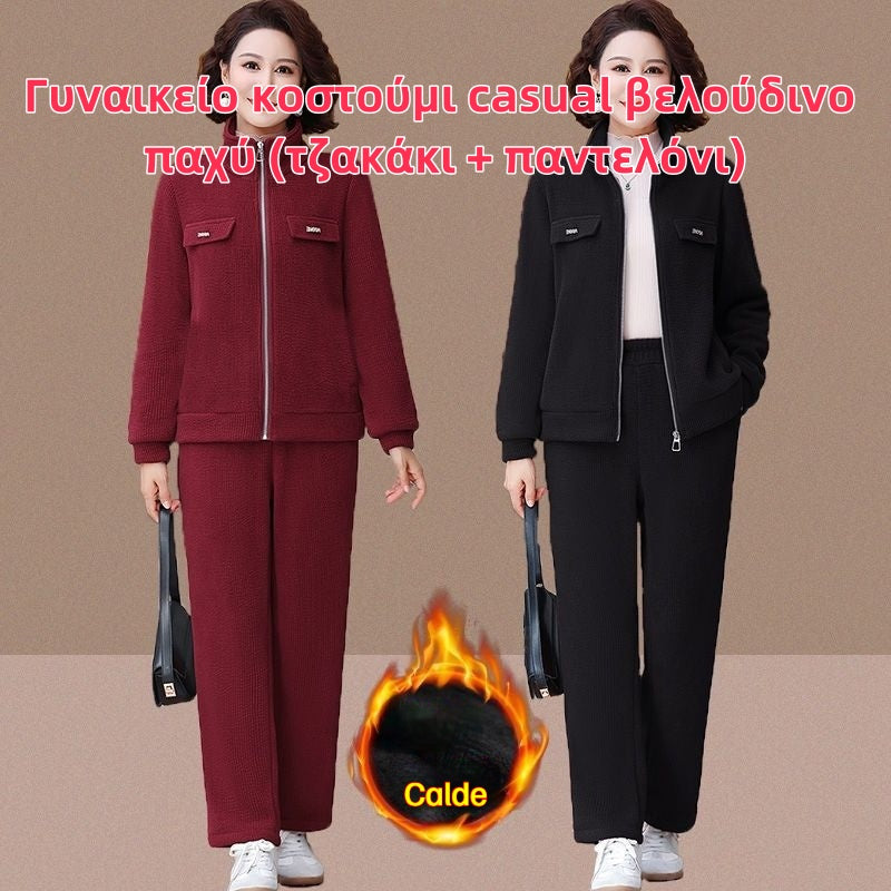 💥【M-4XL】Γυναικείο κοστούμι casual βελούδινο παχύ (τζακάκι + παντελόνι)