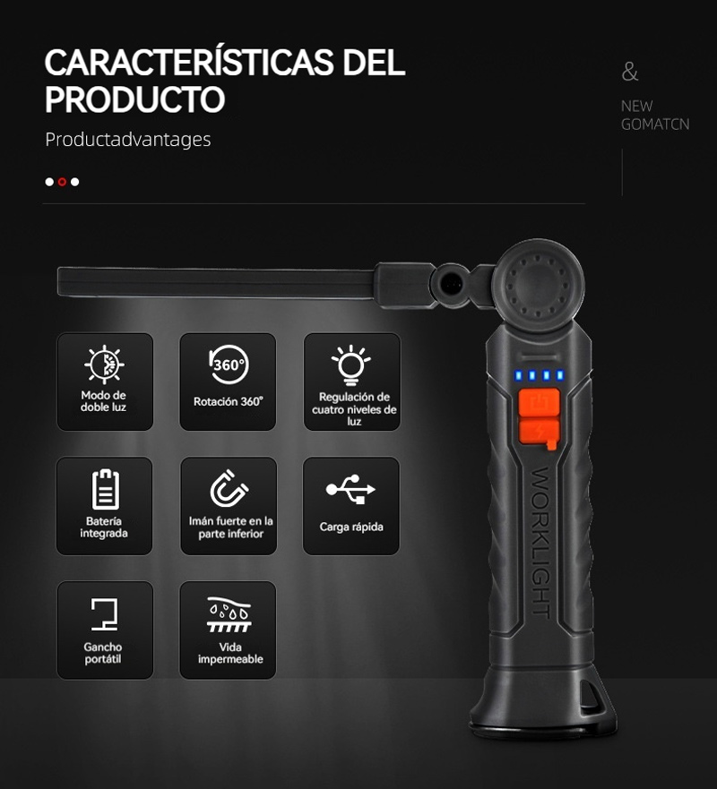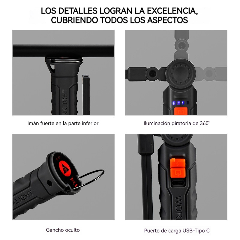 Luz de trabajo LED multifuncional para reparación de automóviles con imán COB